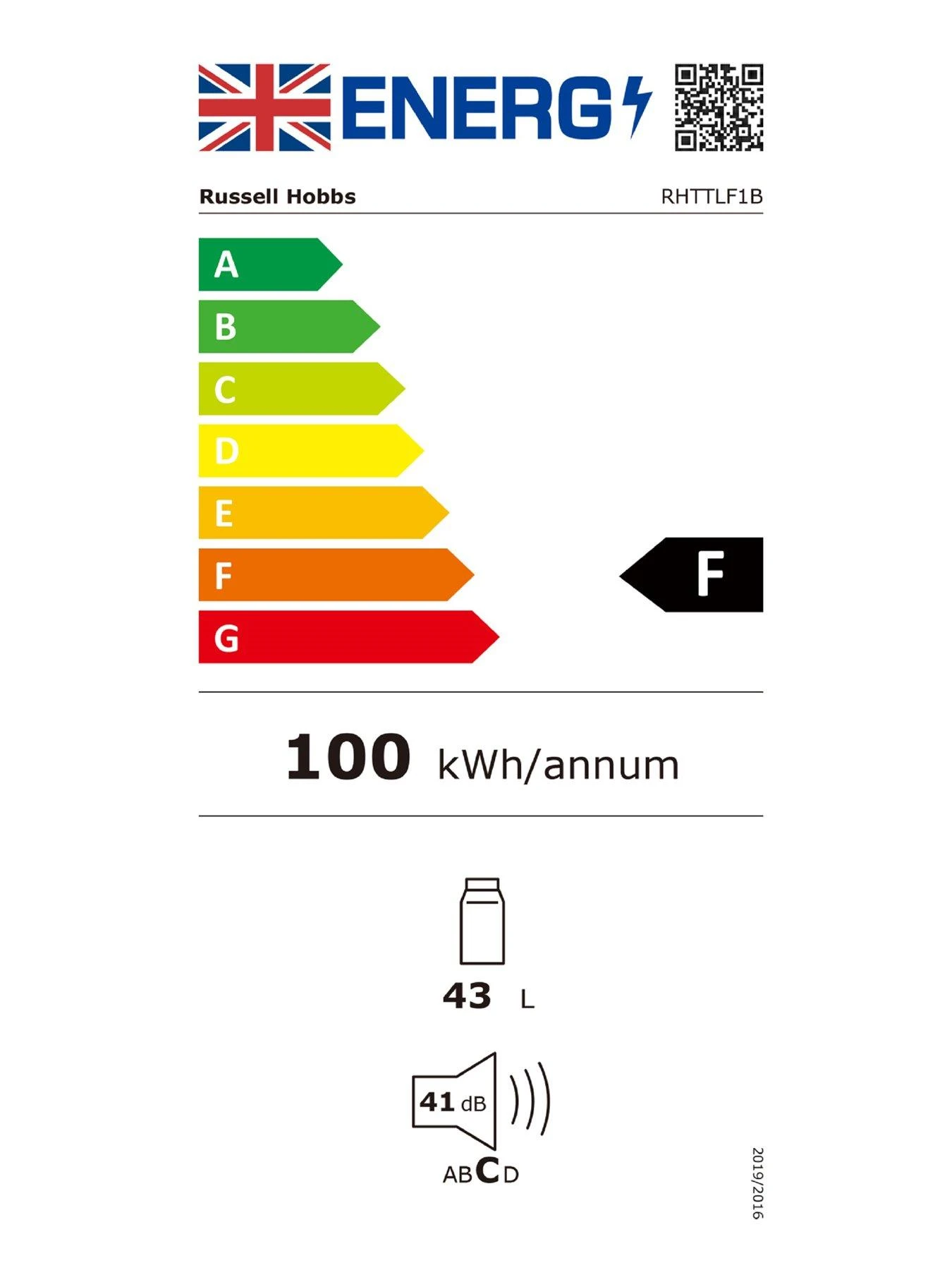 For added peace of mind, this Russell Hobbs Table Top Fridge comes with a 1 Year Guarantee upon registration. And with an F energy rating and low noise levels (41dB), your costs and carbon footprint can be kept to a minimum.