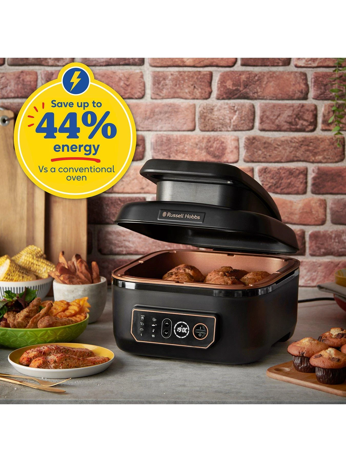 The SatisFry Air & Grill Multi Cooker air fries up to 70% faster than previous Russell Hobbs models and up to 76% faster than conventional oven-cooked food.