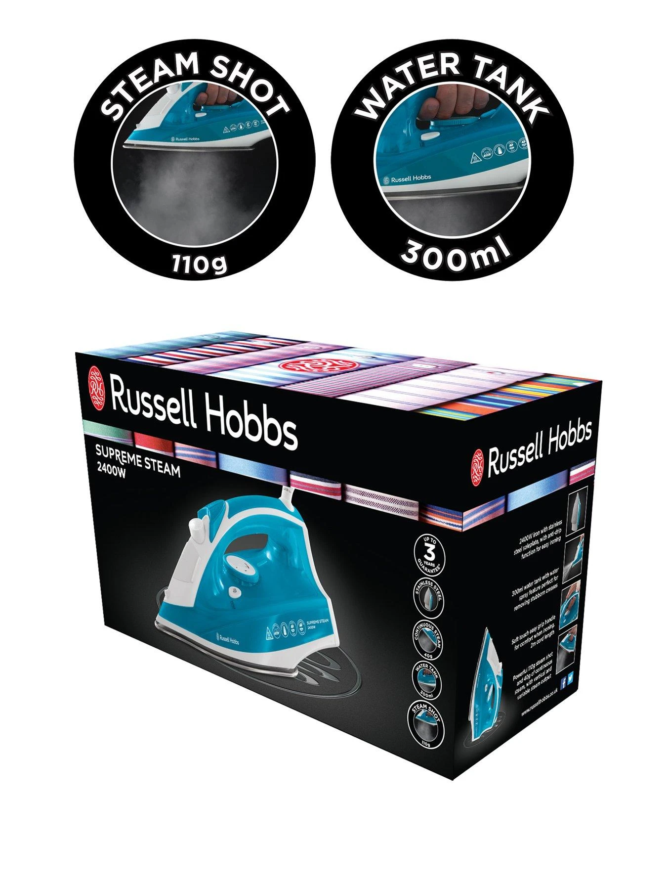 Ironing; whether you love it or hate it, speed up the process with the Supreme Steam Iron from Russell Hobbs. With a combination of innovative features, this iron has been specifically designed to help whiz through large or small ironing piles with ease, helping you get the job done faster.