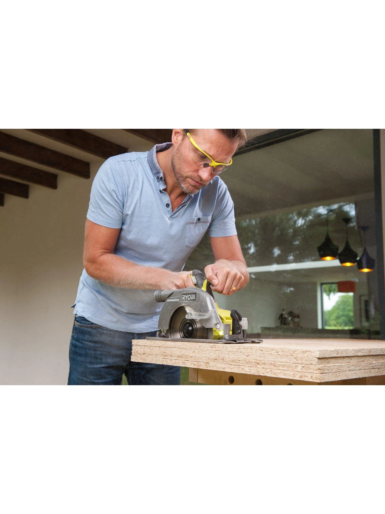 The RYOBI R18CS7-0 18V ONE+ Brushless Circular Saw provides corded performance with the freedom of cordless.