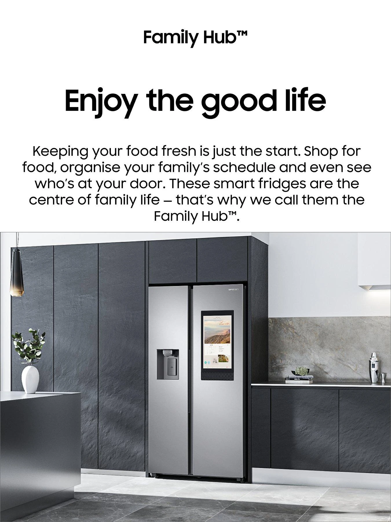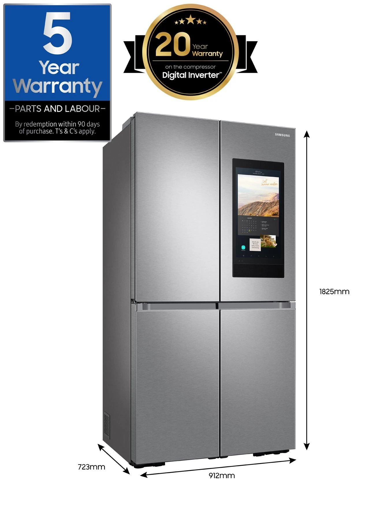 You can use the clever WiFi-enabled LCD touchscreen to share photos, videos and messages with the family via the SmartThings app. You can also use it to read the news, check the weather forecast or show a dinner recipe. Your shopping list has also never been easier thanks to the built-in camera that let you see what’s inside your fridge anywhere from your phone*. You can do the weekly shop directly from the touchscreen too.