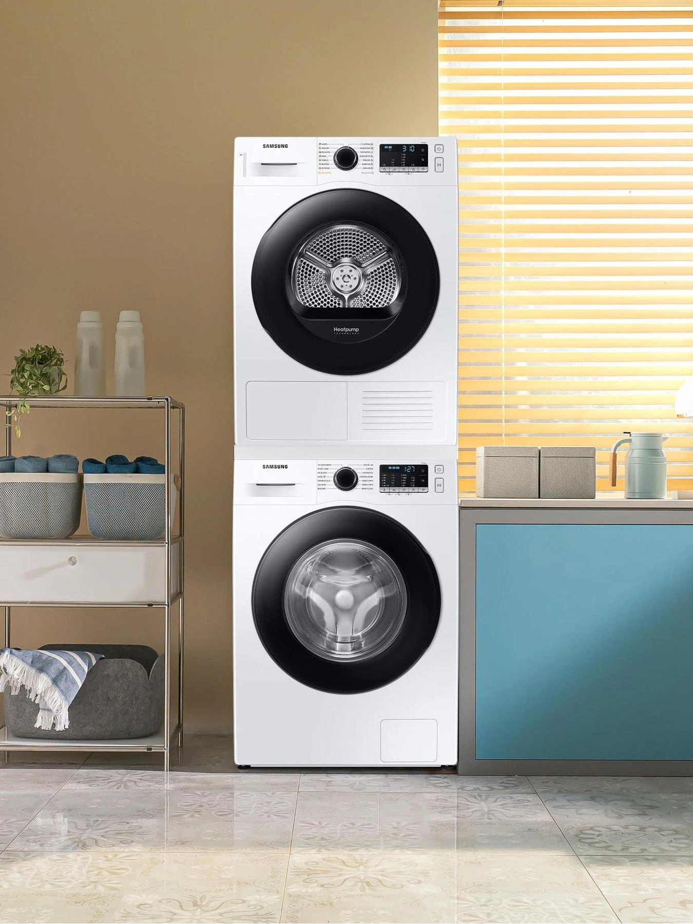 - Heat Pump Technology – Dry your laundry more efficiently by reheating the air in the drum, making it kinder on your bills and the environment