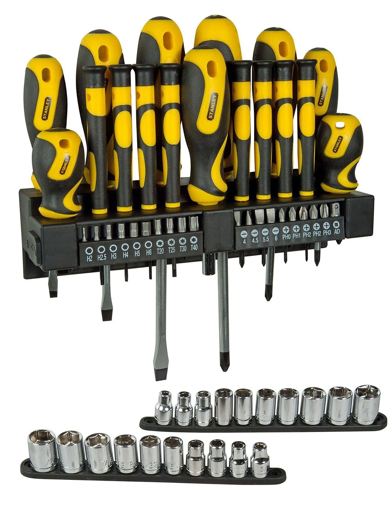 The STANLEY 57 Piece Screwdriver Set has been built using chrome vanadium steel, which helps ensure a longer life. The handle design has been moulded to the bar creating a virtually unbreakable bond that is highly reliable. The marked screwdriver ends offer easier identification for selecting the correct screwdriver for the correct application.