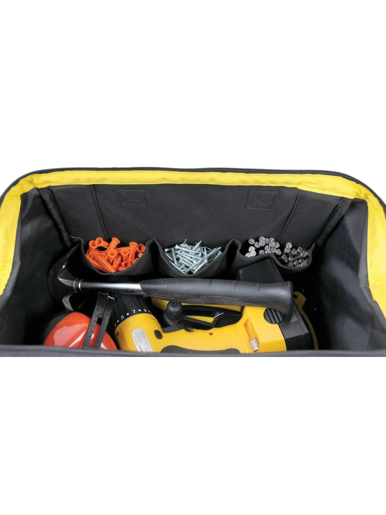 The STANLEY Essential Open Mouth Tool Bag is constructed from 600 denier fabrics and is hardwearing, strong and durable.