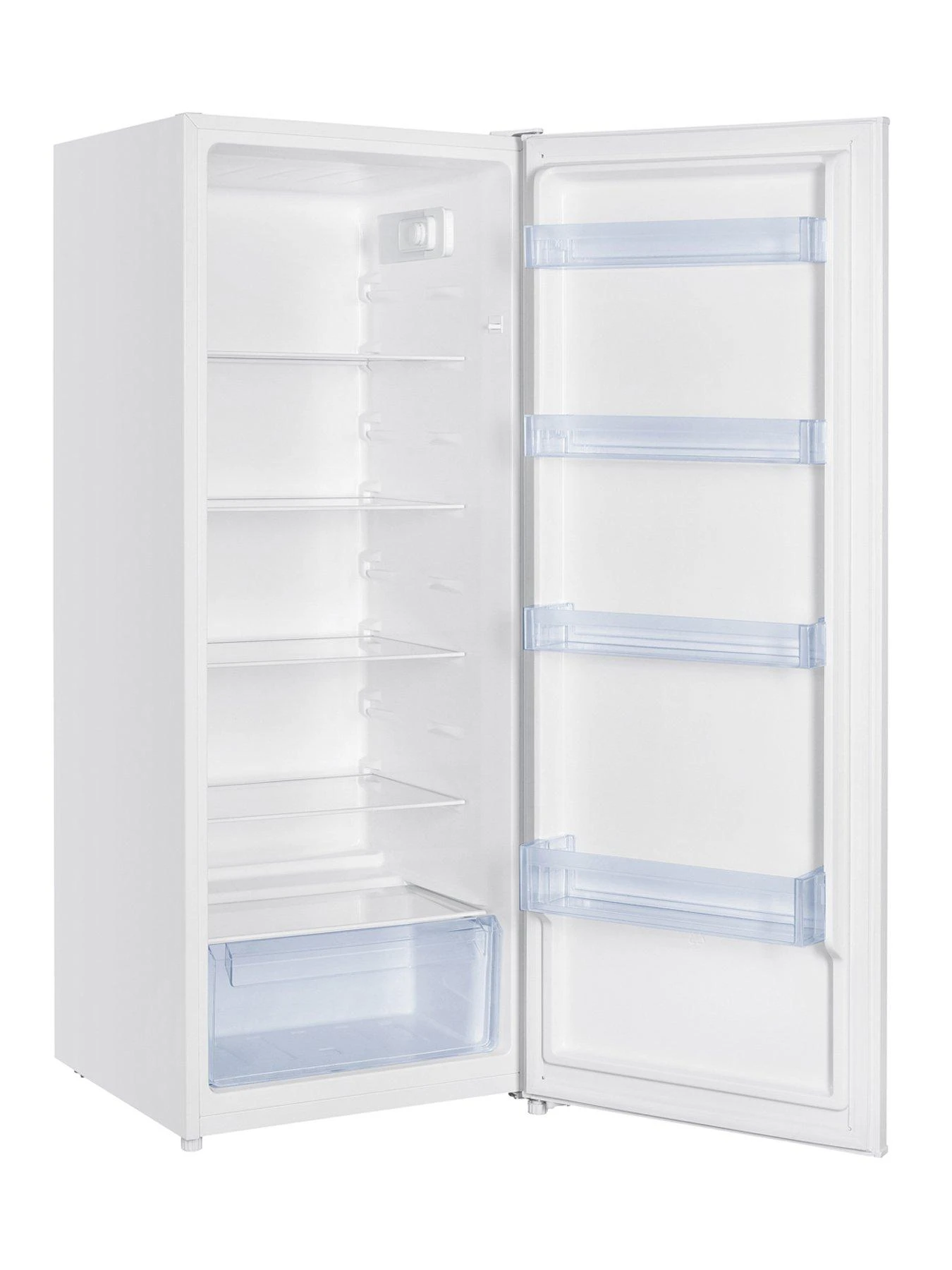 The spacious 242-litre interior includes 4 adjustable safety glasses shelves, a large salad drawer at the bottom for your fruit and vegetables, as well as 4 door balconies.