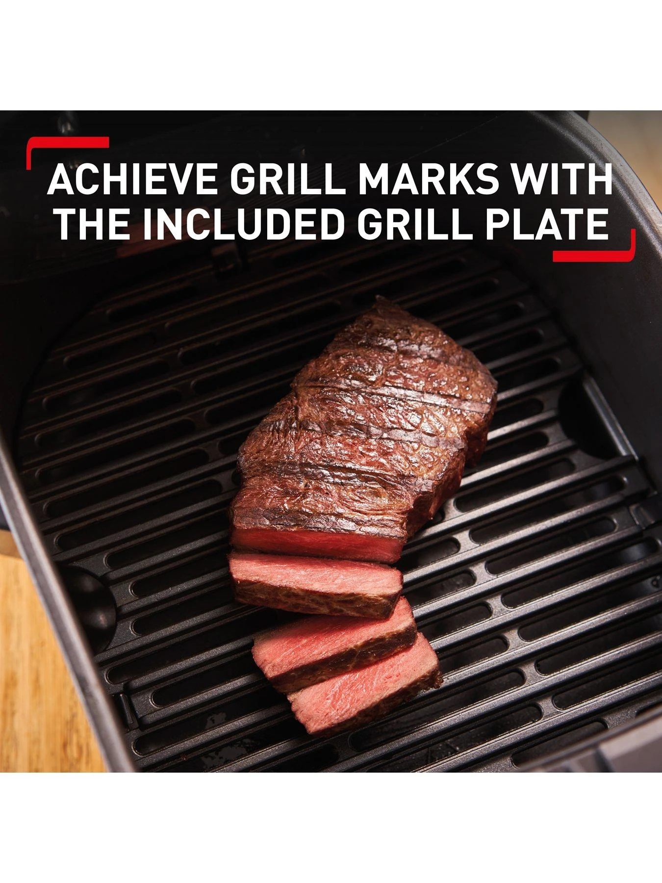 3-in-1 digital air fryer, steamer and grill with unique grill plate for BBQ searing.