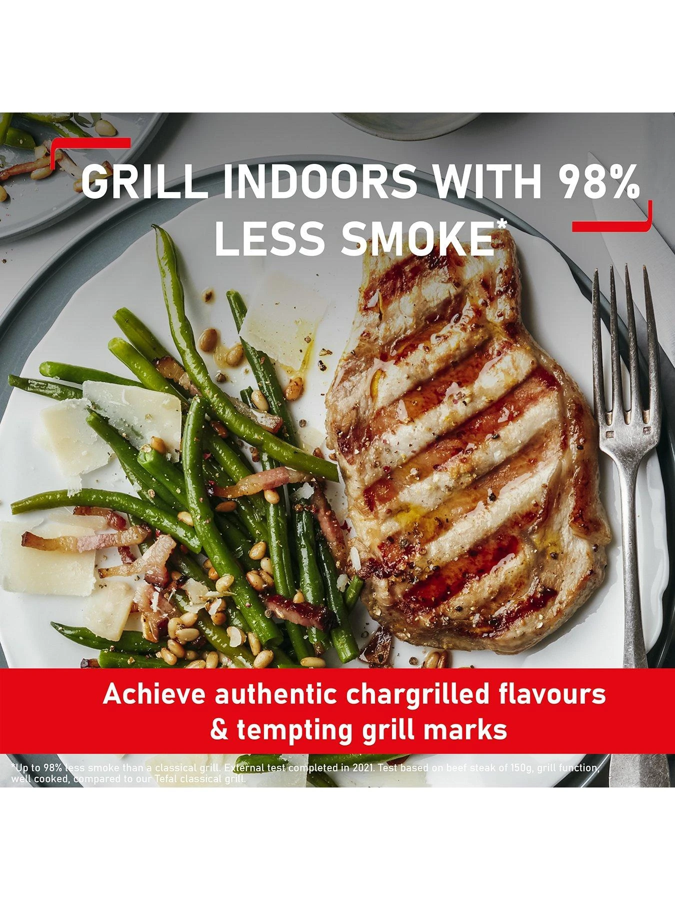 *49% faster cooking with less energy than a conventional oven; external test cooking 1000g of frozen French fries, compared to a Tefal convection oven. | **Up to 70% energy saving with air fryers by Tefal vs conventional oven Energy Class A. Tests conducted in 2022 on frozen fries. | ***Up to 98% less smoke than a classical grill. External test completed in 2021. Test based on beef steak of 150g, grill function, well cooked, compared to our Tefal classical grill. | ****99% less added fat: 700g of fresh fries cooked with 8ml of oil vs traditional deep frying with 2L.