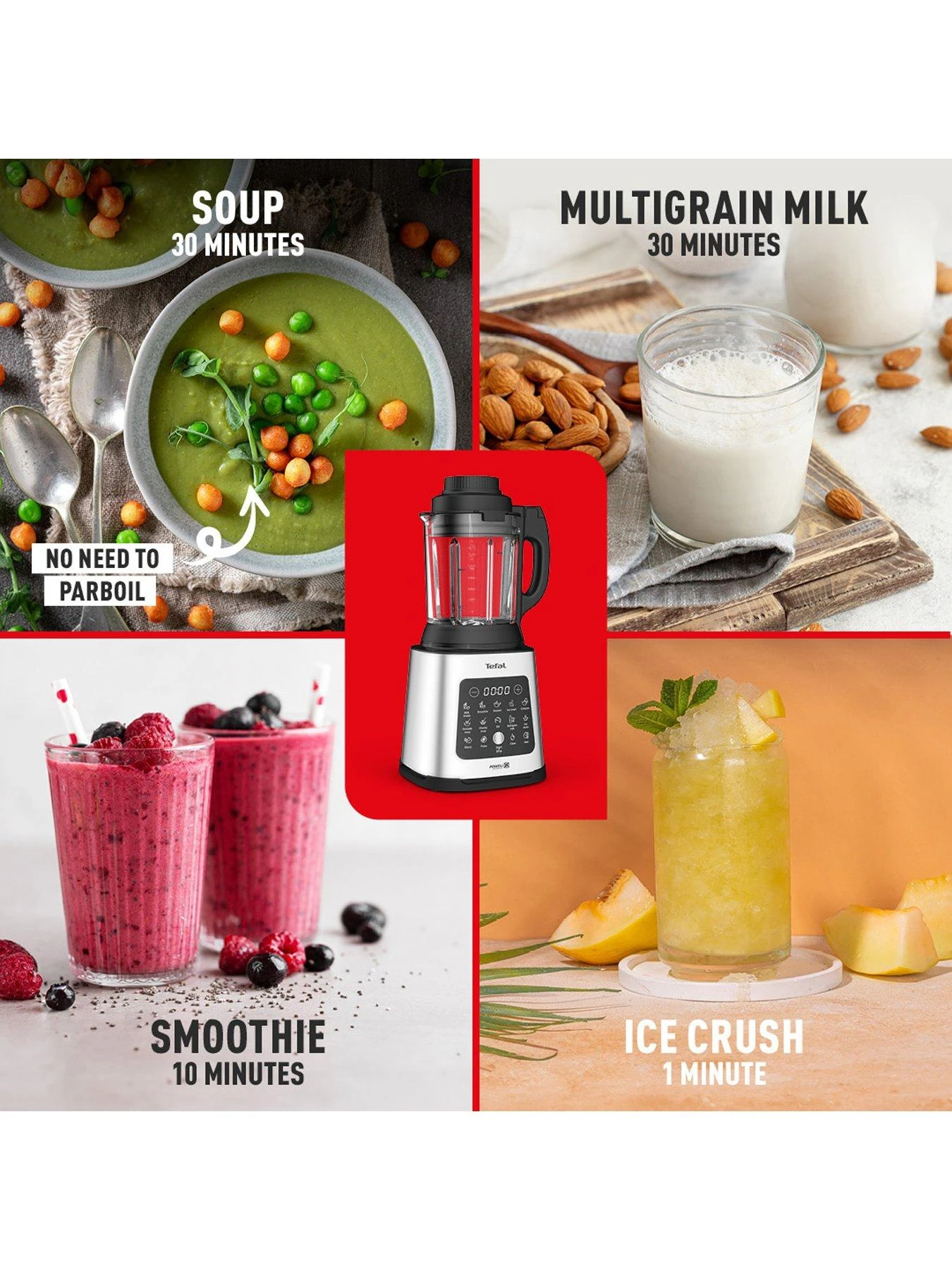 Meet Tefal Perfectmix Cook, the high-speed blender that also cooks. In addition to whizzing up smoothies, this premium blender cooks soups and sauces, makes milk, and even steams fish. Choose from 10 automatic hot or cold programs, or go manual for custom results. A 1400W motor and six Powelix blades ensure smoother, faster blending. And it’s so easy to use with touch controls, a 1.75L glass jug, an automatic cleaning program and removable blades. Made to last, it has a robust metal body, built-in cooling system, and is repairable for 10 years.