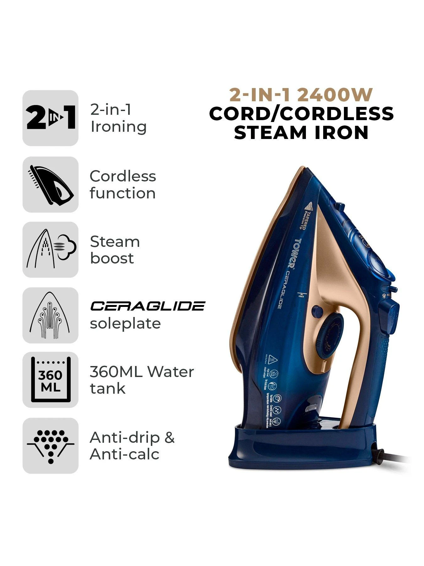 Tower 2400W Cord Cordless Steam Iron – Blue/Gold