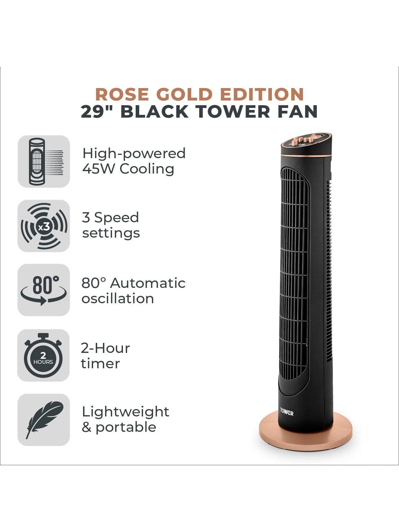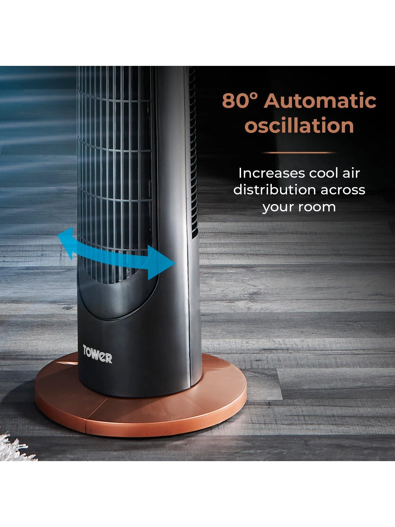 Rotary oscillation provides air coverage across a 80-degree angle to help keep you and the surrounding area cool. The Tower Cavaletto 29 inch Tower Fan is also light and easy to move around your home.