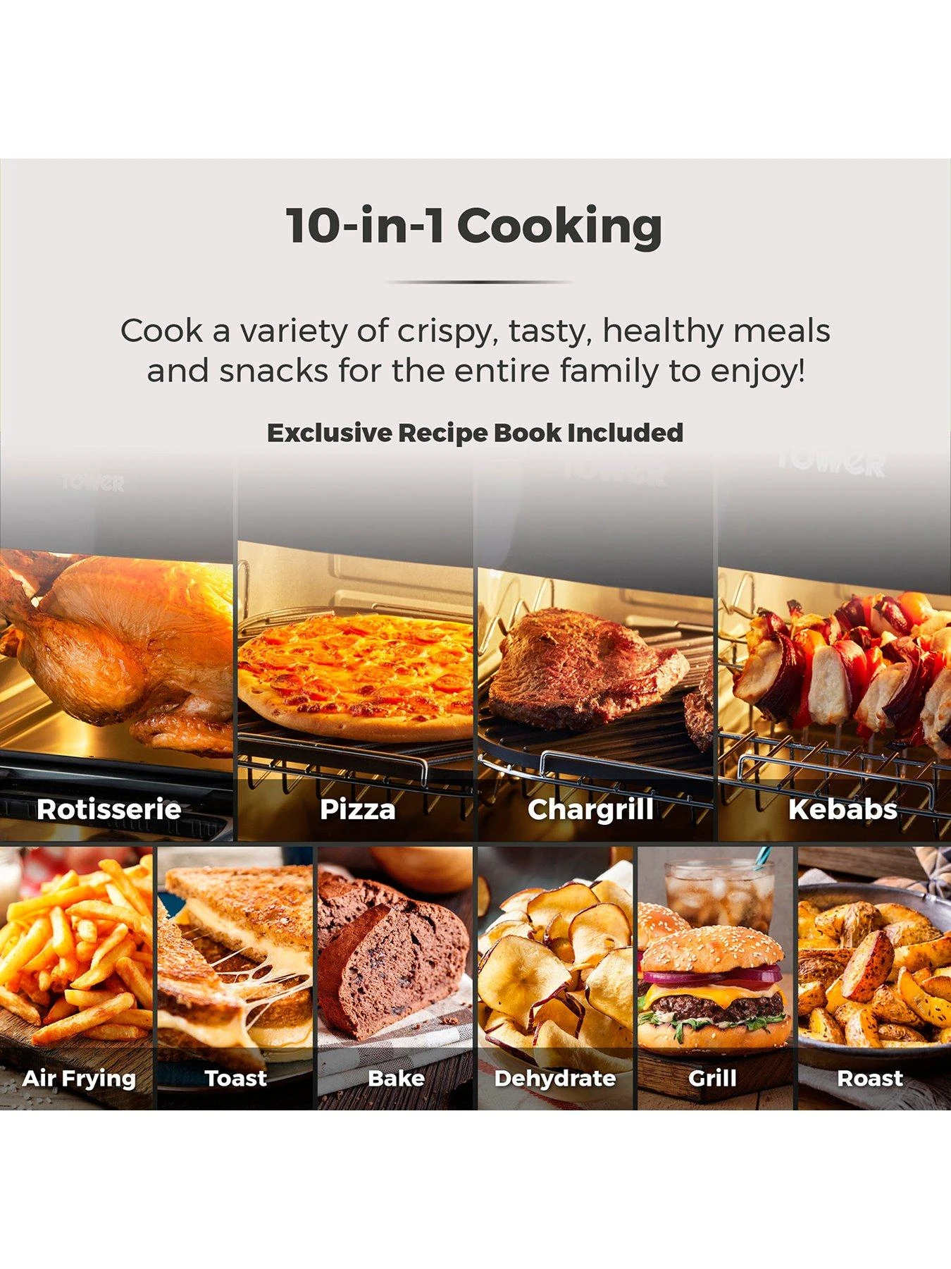 It’s quick and easy to cook a range of delicious recipes with this multi-functional Digital Air Fryer from Tower. It works as an air fryer, rotisserie oven and dehydrator with roasting and baking functions. The addition of the reversible grill plate and wire rack accessories allow you to cook sizzling steaks, pizzas and sausages and more. The wire rack is great for holding skewers, slices of bread and can be used as a conventional grill.