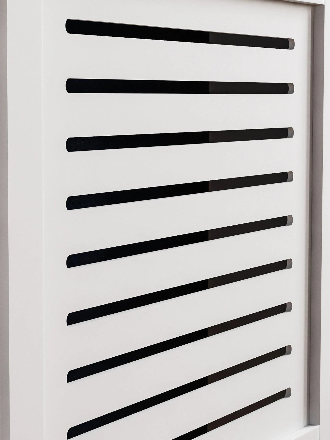 This Milton cover by Vida Designs is a great way to hide away your radiator and provide your room with extra shelving space. Finished in a neutral white shade which will match any wall colour or pattern, the small cover features a horizontal line pattern that allows the heat of your radiator to flow out into your room.