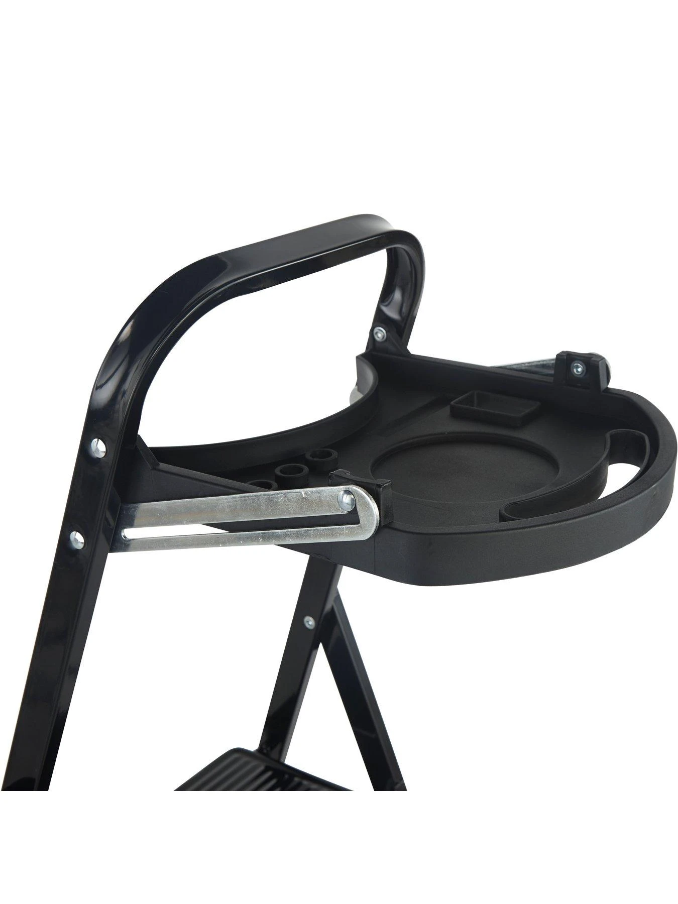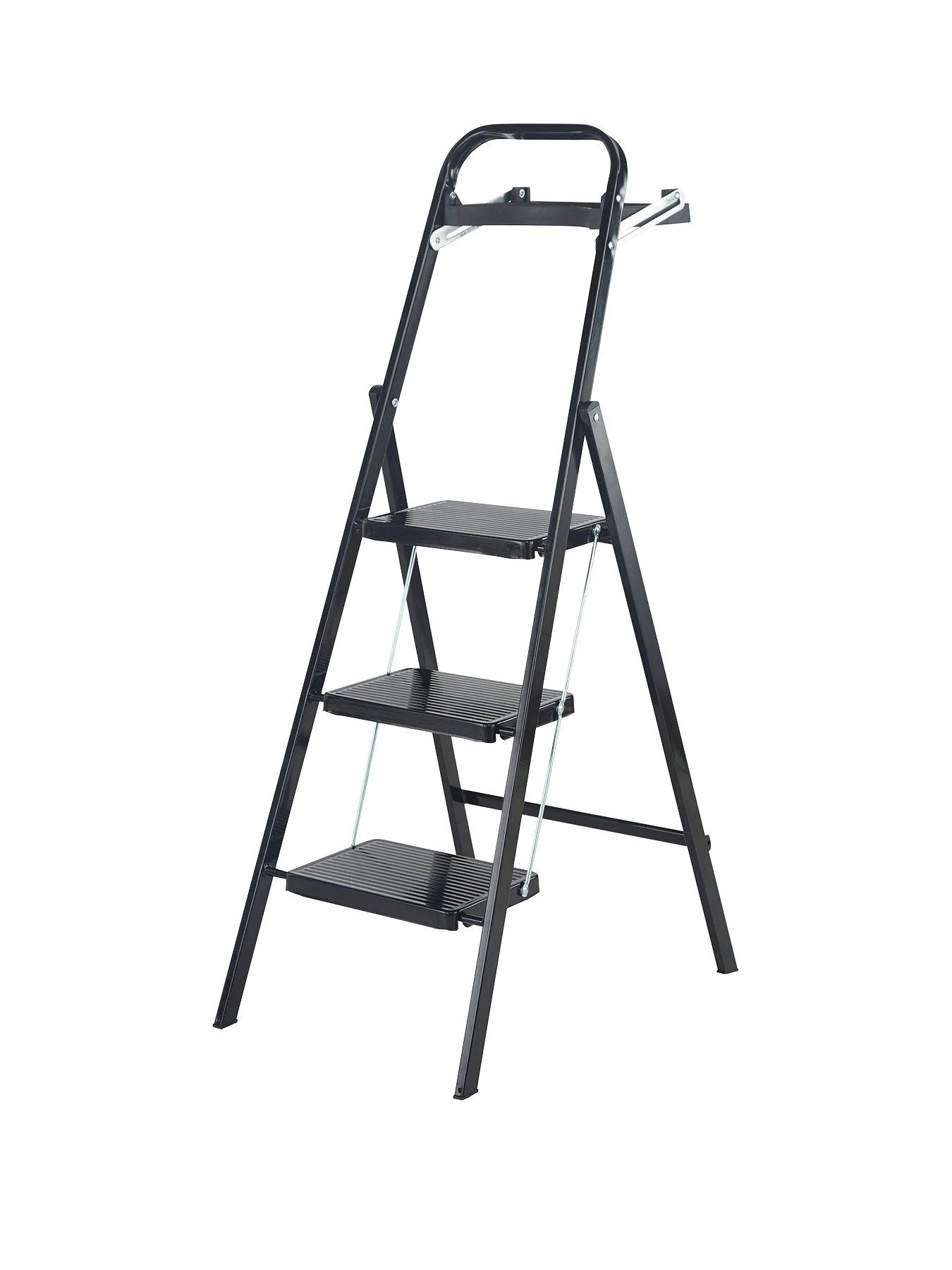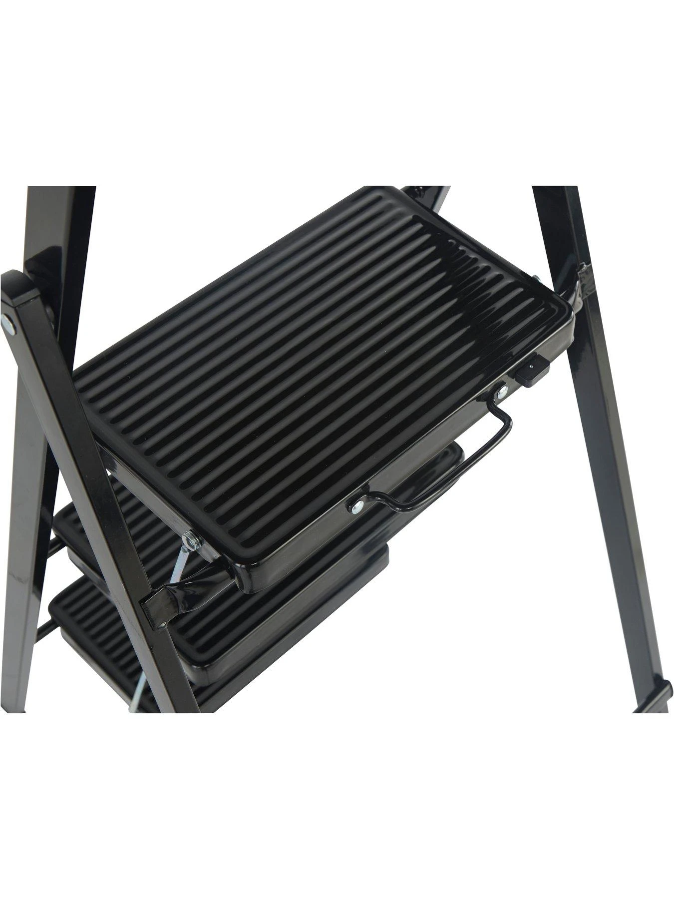 When not in use, this smart black stepstool can be folded to a depth of just 5cm, making it easy to store away out of sight. Useful features include a handy tool tray for holding project materials, and an automatic locking system for extra safety.