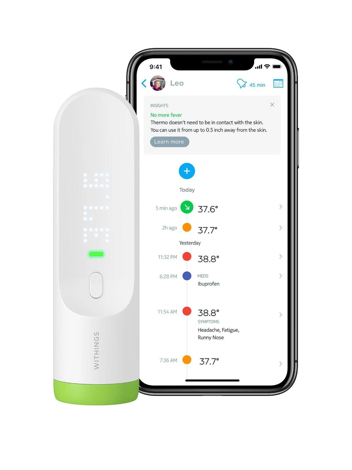 Withings Thermo Smart Temporal Thermometer, Suitable for all Ages, No Contact Required