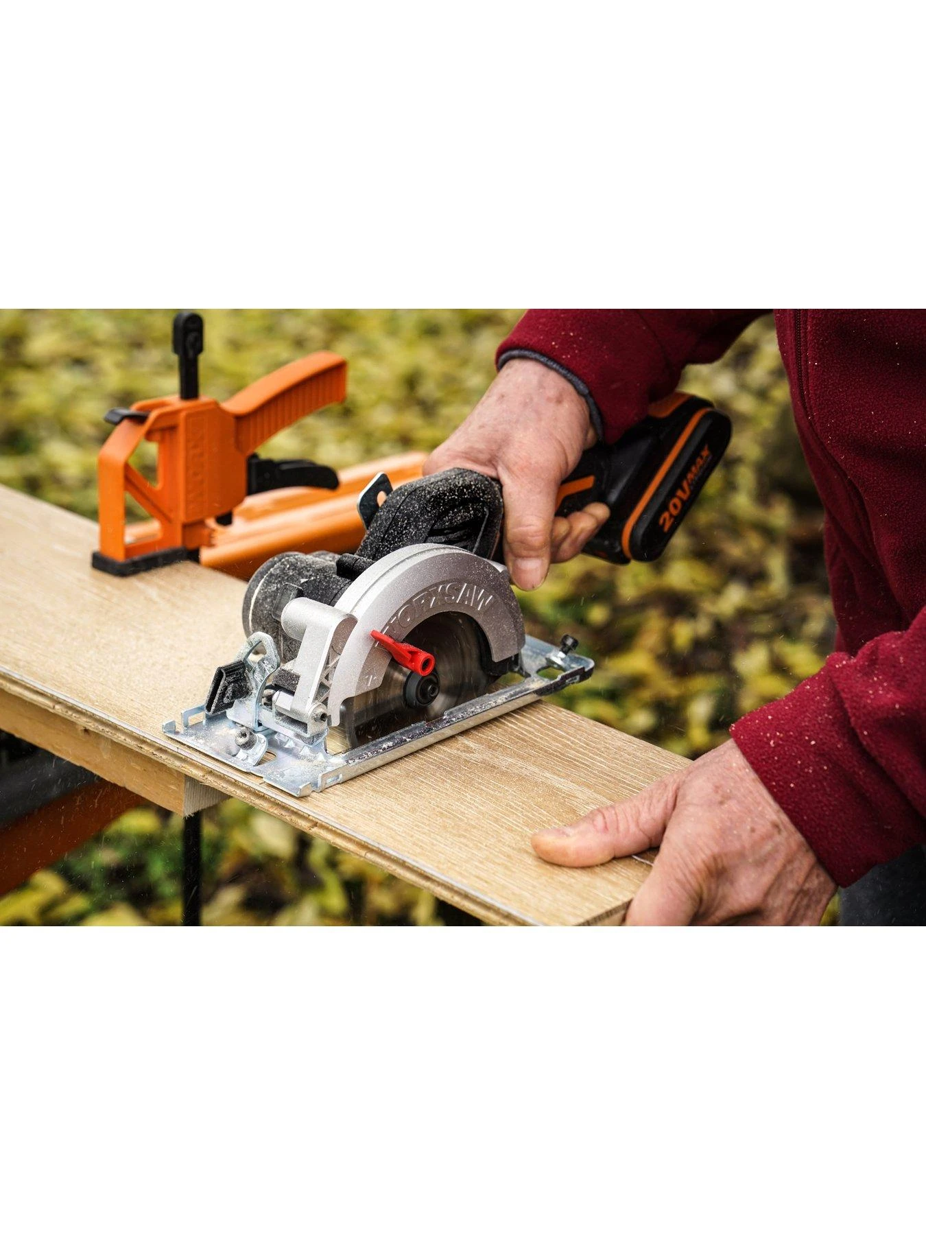 You can work anywhere with the cordless Worx WX531 XL WORXSAW Brushless 46mm Compact Circular Saw.